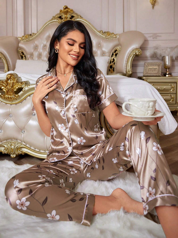 The Mocha Bloom Pajama Set is a gentle celebration of femininity โ where satin sheen meets the quiet poetry of soft florals.