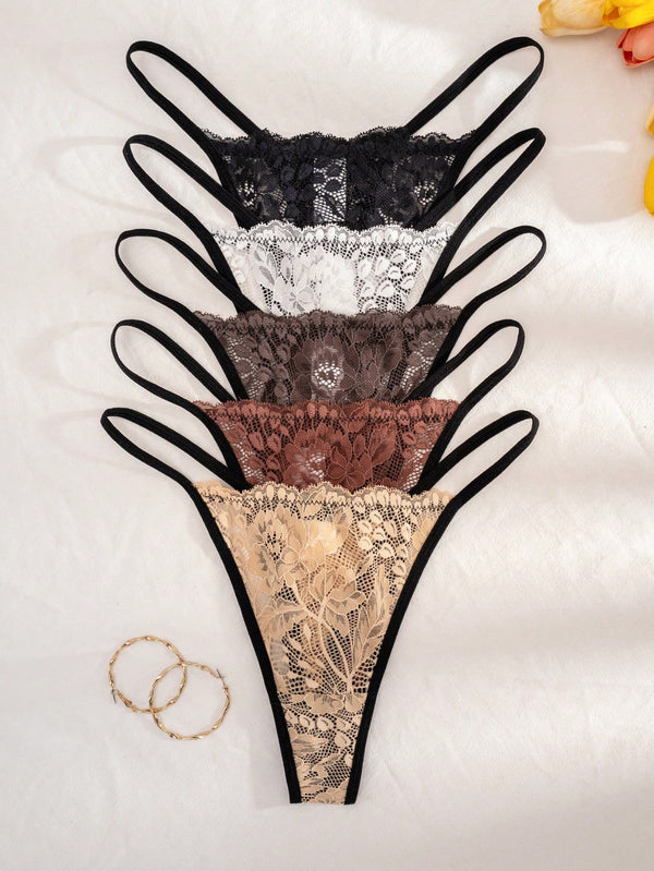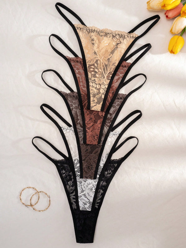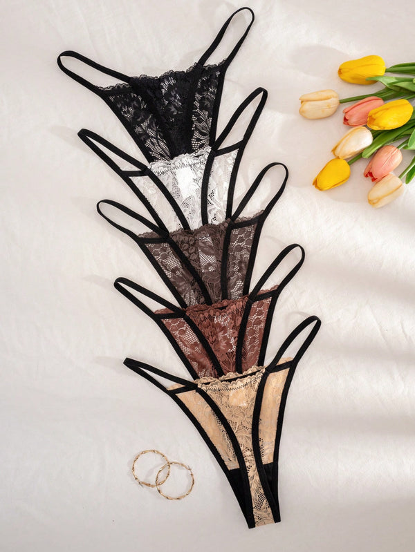✨ The Amoura Lace Silhouette Thong Set — 5 Pieces