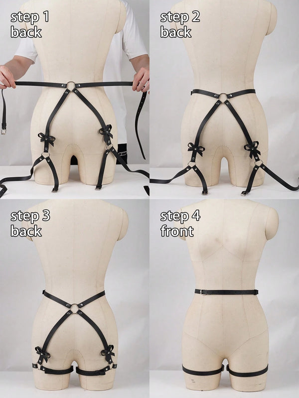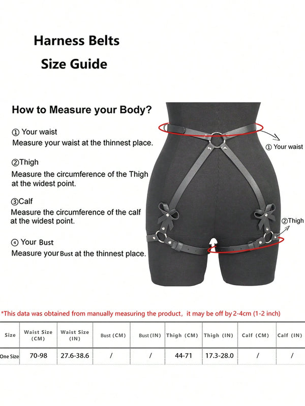 The Aphrodite Bow Leather Garter Harness blends feminine charm with daring design. Crafted from smooth black PU leather, it features playful bow accents and polished metal rings that trace the hips and thighs in elegant symmetry. Equal parts flirtation and strength, Aphrodite transforms every curve into a canvas of confidence — perfect for those who embody both grace and edge.