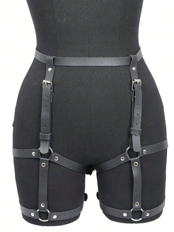 The Hecate Double-Leg Leather Garter Harness is an ode to modern power and timeless allure. Designed with precision and bold intent, it combines sleek PU leather straps with polished metal rings to sculpt the legs in perfect balance. The result — a striking interplay of edge and elegance. Whether layered over lingerie or styled as a statement piece for nights out, Hecate embodies the art of control and confidence.
