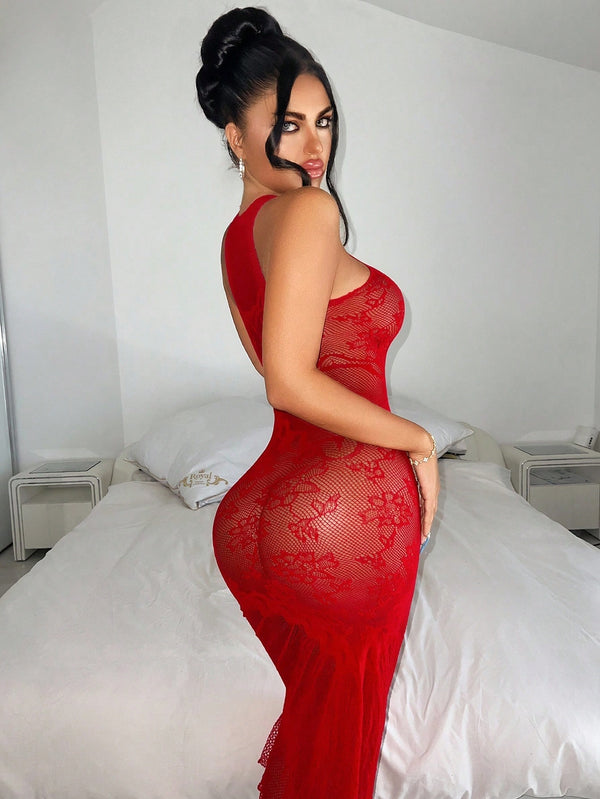 The Scarlett Obsession Lace Gown captures pure desire with a touch of refined grace. Draped in sultry red mesh and intricate lace, this breathtaking piece enhances every curve with its sculpted silhouette and sheer allure. Designed for moments that demand confidence and sensuality, it’s the perfect expression of bold romance and feminine power.