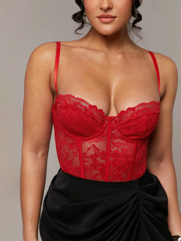 ❤️ The Vivienne Rouge Lace Camisole Bodysuit