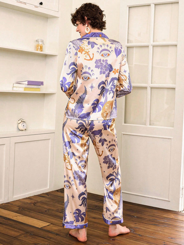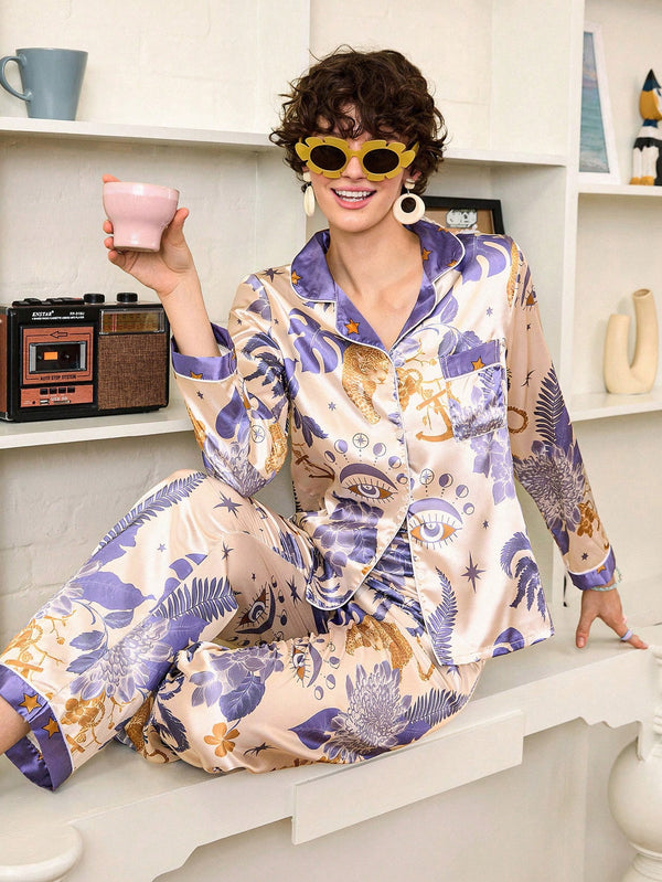 • Set Composition: Two-piece pajama set โ€” long-sleeve lapel top and full-length pants