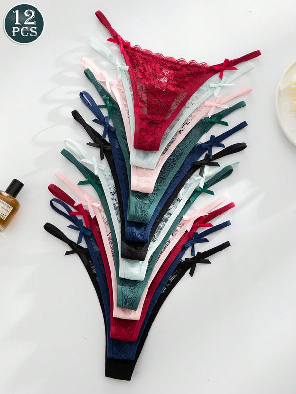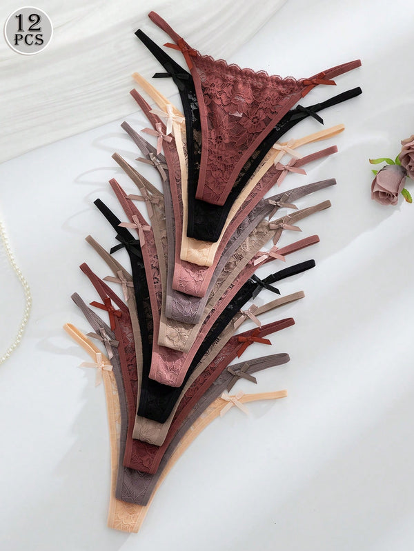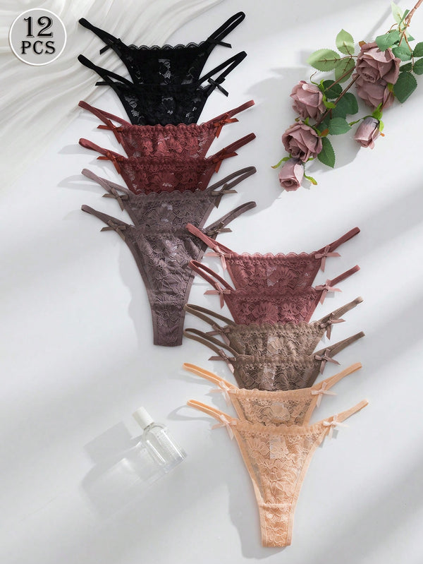 🌸 The Elara Lace Whisper Thong Set β€” 12 Pieces