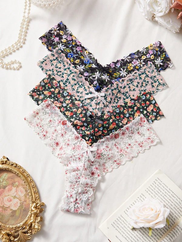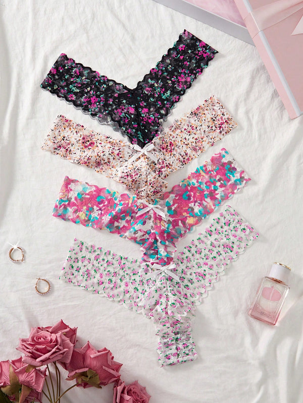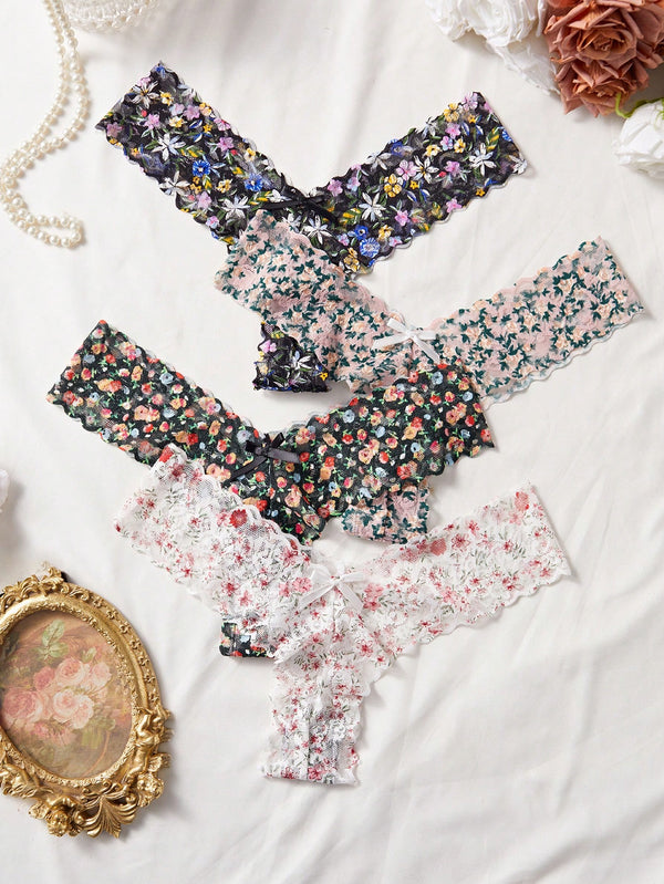 🌸 The Seraphine Lace Veil Thong Set β€” 4 Pieces