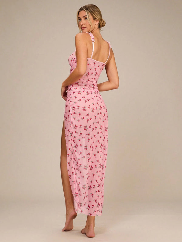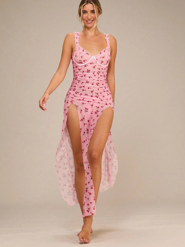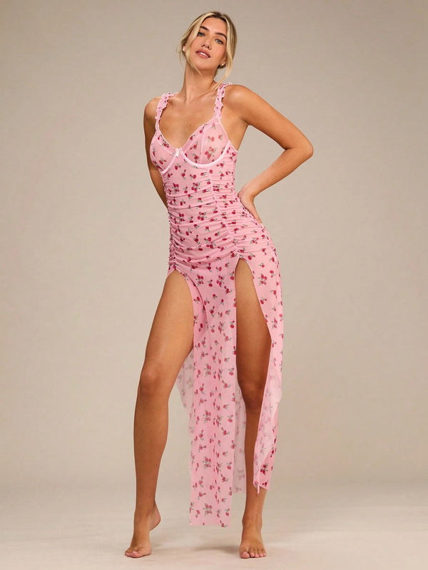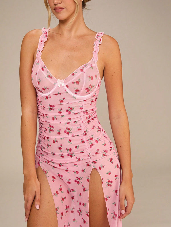 • Pattern & Detailing: Romantic floral print with ruched pleating, lettuce trim, and soft frill straps.