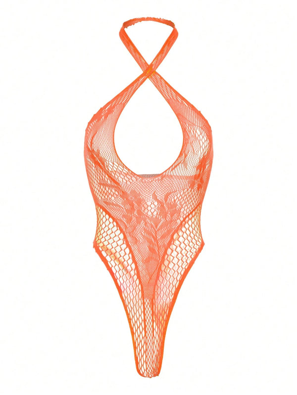 Turn every movement into a spark of allure with the Ember Kiss Bodystocking. This sultry one-piece creation embraces your figure in fiery orange mesh, blending Y2K-inspired design with modern sensuality. Its backless cut and sculpting high-rise form celebrate your natural curves, while the intricate openwork pattern leaves just enough to the imagination.