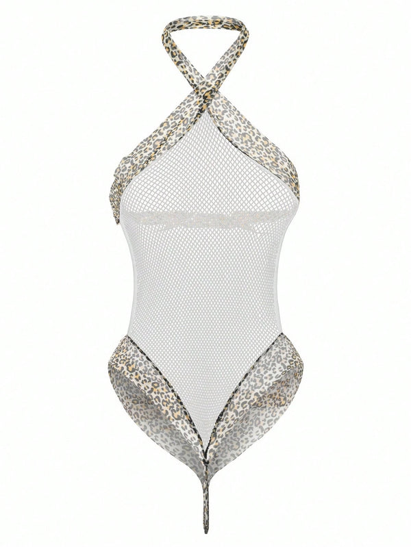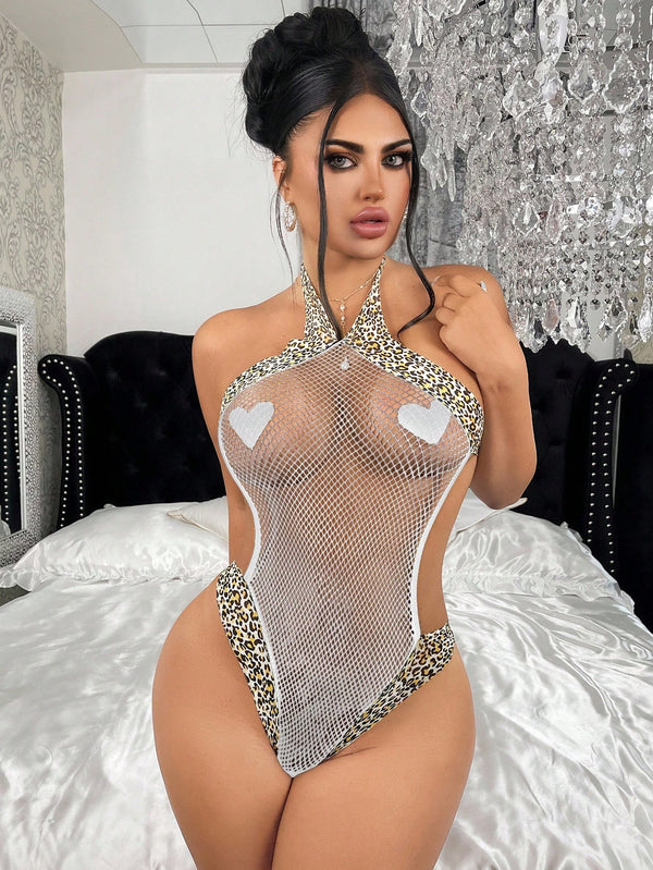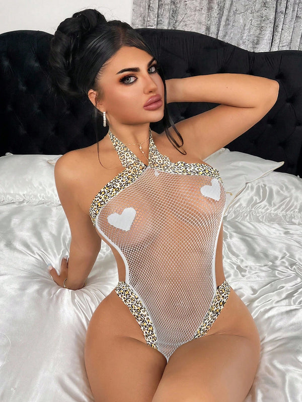 The Wild Mirage Bodystocking captures the raw allure of the wilderness, blending daring transparency with fierce sophistication. Its halter neckline frames the shoulders beautifully, while the open sides and leopard-print trim add a touch of wild seduction. Designed in a sheer, high-stretch mesh that molds to the body, this piece balances bold sensuality with refined detail โ€” a look thatโ€™s confident, fearless, and unforgettable.