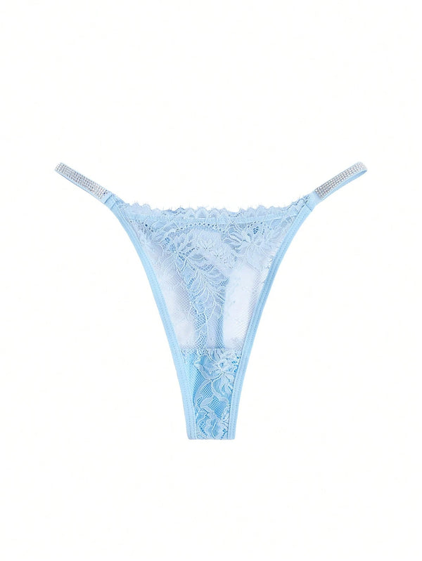 Crafted in ethereal baby blue lace and kissed with rhinestone-adorned straps, this piece turns simplicity into luxury. Every shimmering detail captures light like a secret whispered in satin tones, making it the perfect companion for those who believe beauty lives in the smallest details.
