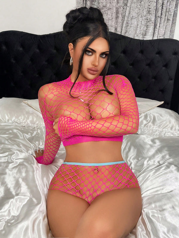 The Hot Pink Siren Fishnet Set is a bold celebration of confidence and allure. Designed in an electrifying Y2K-inspired hue, this two-piece ensemble blends nostalgia with modern seduction. Its open fishnet design embraces your curves effortlessly, while the long-sleeve micro crop top and matching boyshorts offer just the right balance of daring and playful charm β perfect for unforgettable private moments.