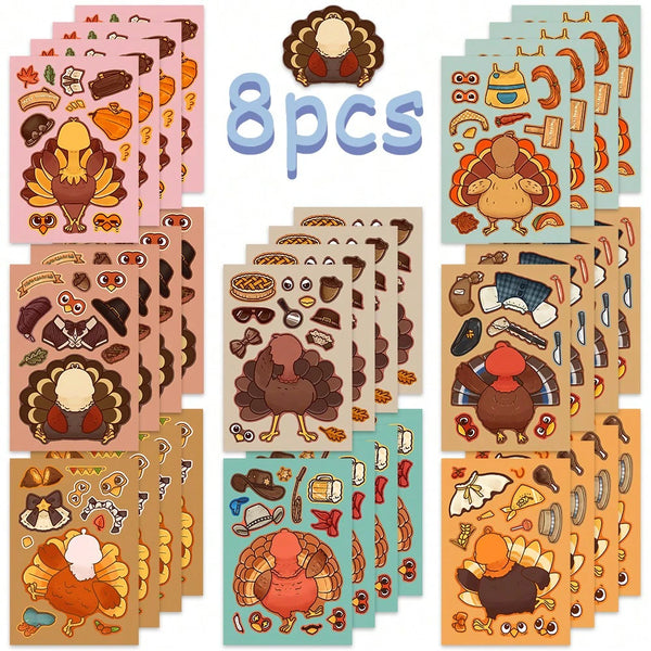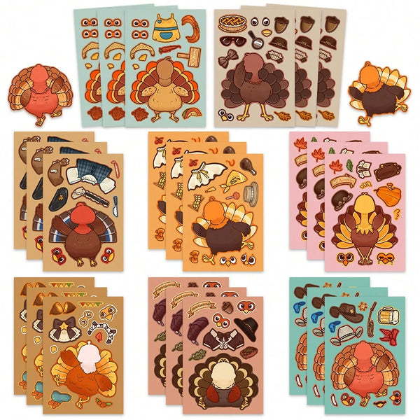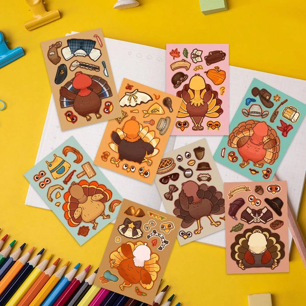 • Includes 8 unique turkey sticker sheets