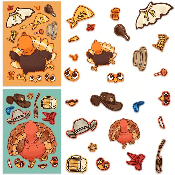 Perfect for kids, teens, and adults, these adorable fall-themed sticker sheets let you assemble your own turkeys with hats, wings, feathers, and accessories. Great for Friendsgiving parties, classroom crafts, Thanksgiving games, and creative family time!