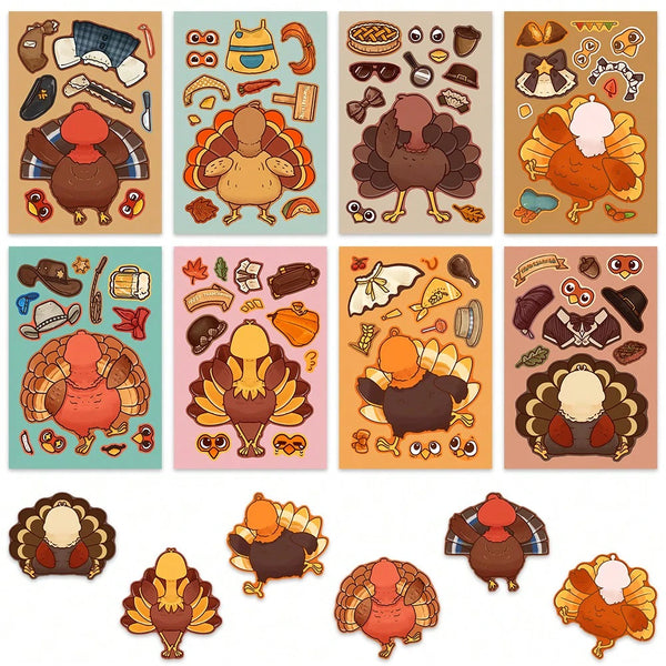Make this Thanksgiving extra fun with these 8 Sheets of DIY Turkey Puzzle Stickers! πŸ¦ƒπŸŽ¨