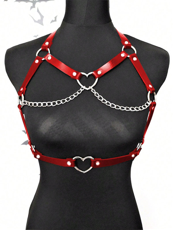heart chain harness, gothic body harness, punk festival chest belt, leather cage top, sexy bondage lingerie, black heart strap accessory