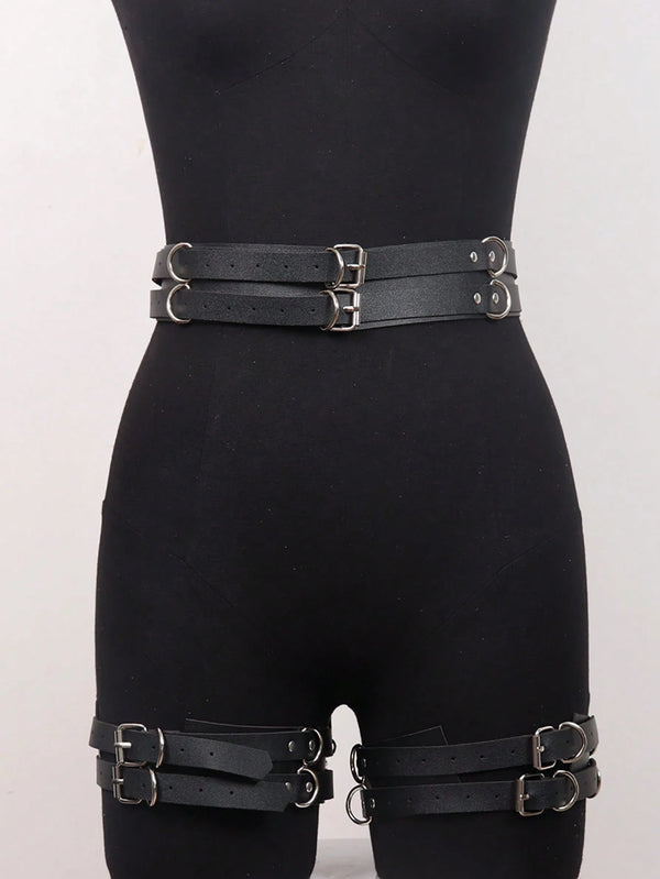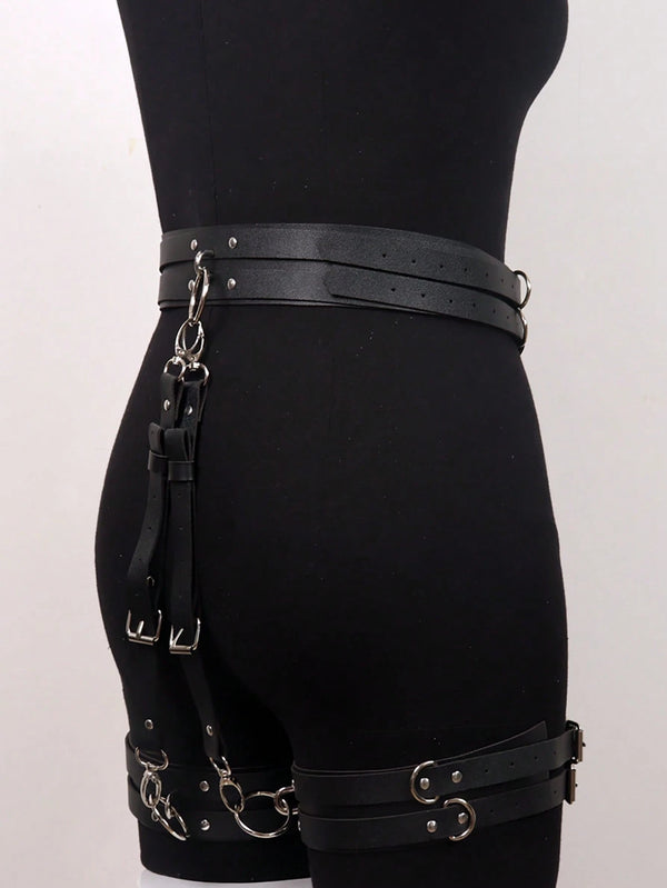 The Nyx Leather Leg Harness combines bold design and precise craftsmanship for a striking, modern statement piece. Made from premium PU leather and finished with polished metal hardware, this adjustable harness accentuates the waist and thighs with clean, structured lines. Perfect for layering over clothing, pairing with performance outfits, or adding a touch of gothic edge to any look.