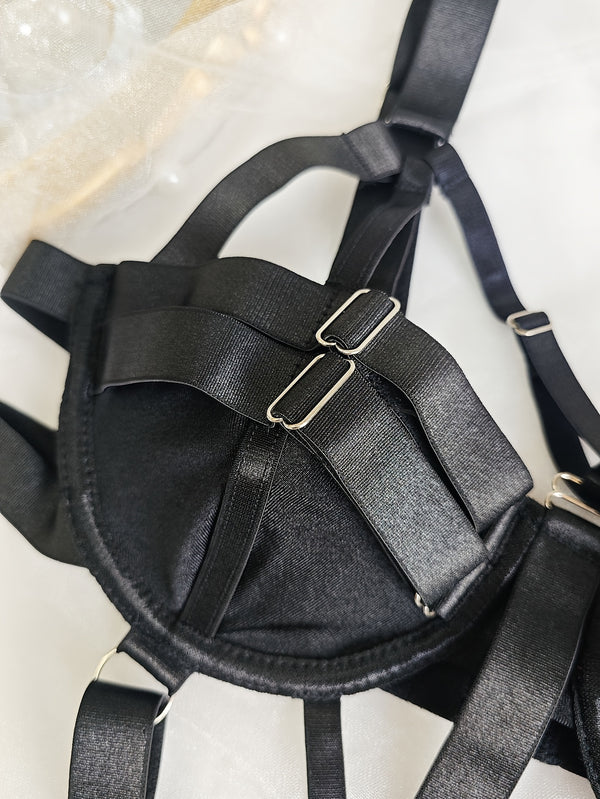 Black Strappy Bodysuit – Adjustable Cross Strap Harness Lingerie | BadBLingerie Gothic Nightwear, Festival Outfit, Body Harness