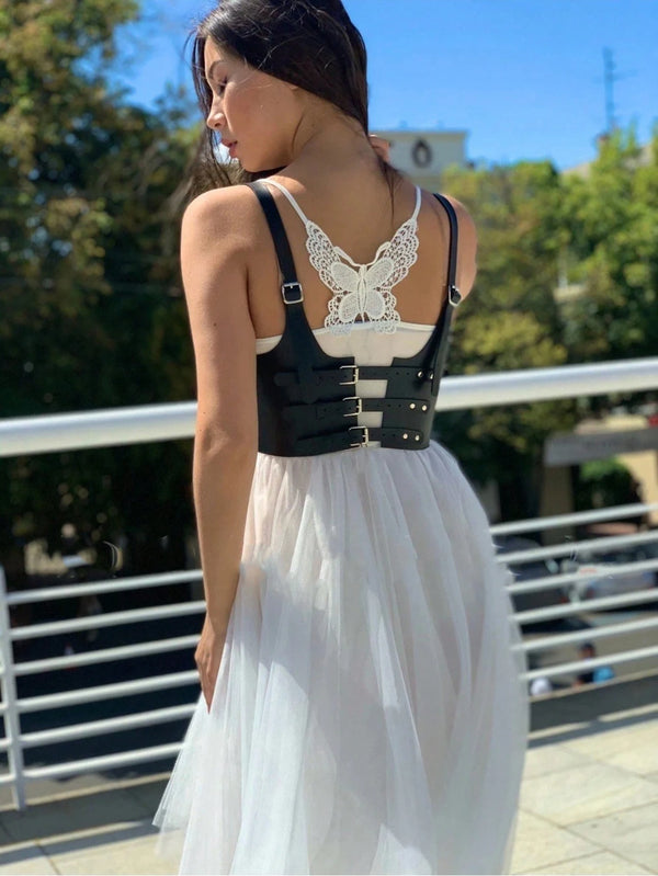 The Astra Retro Wide Leather Waist Harness embodies empowered femininity with bold, architectural design. Its sleek PU leather form sculpts the waist while adjustable suspender straps bring a striking, contemporary silhouette. Inspired by vintage corsetry, Astra transitions effortlessly from daytime elegance to evening statement, redefining what it means to wear confidence.