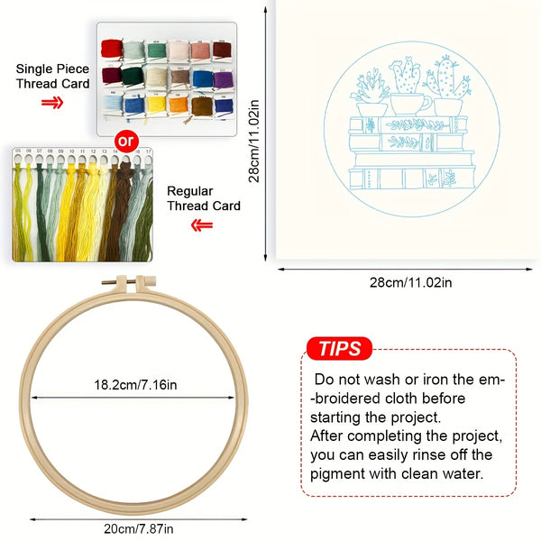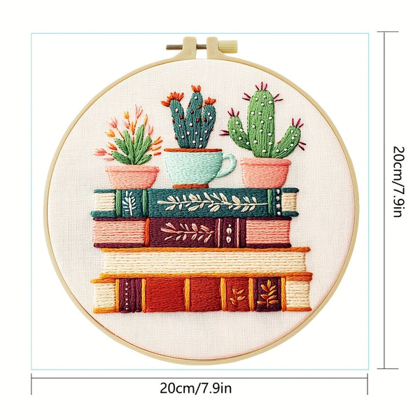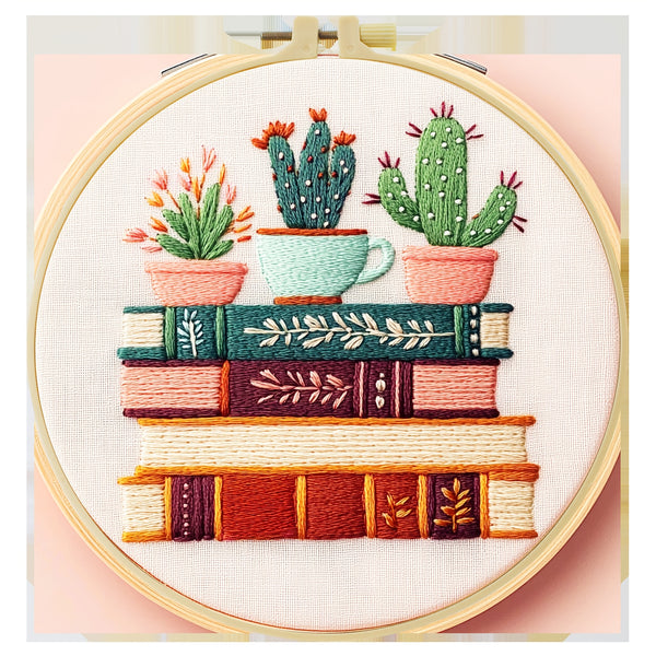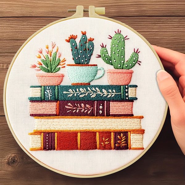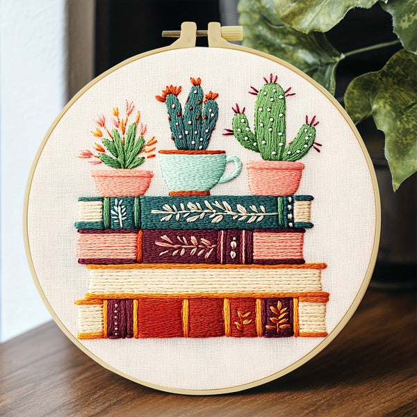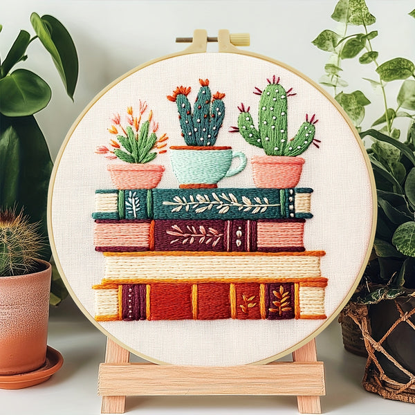 Book & Potted Plant Embroidery Kit – Beginner DIY Stitch Set with Fabric, Hoop & Threads | Handmade Gift & Home Décor Craft
