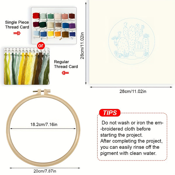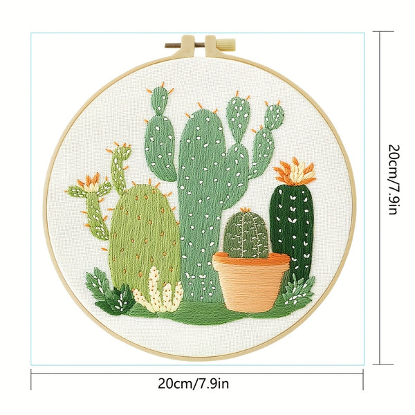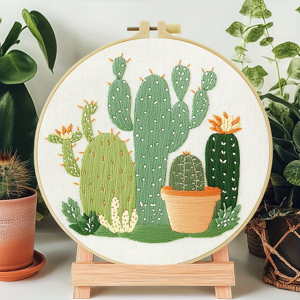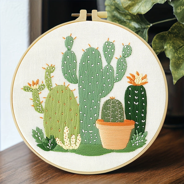 Cactus Embroidery Kit – Beginner DIY Stitch Set with Fabric, Threads & Needle | Handmade Gift for Home Décor & Craft Lovers