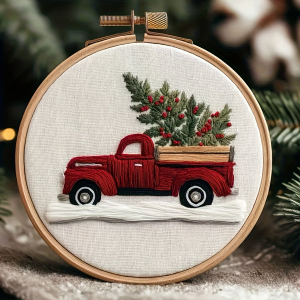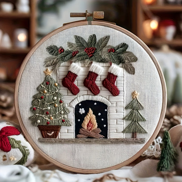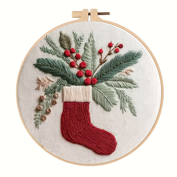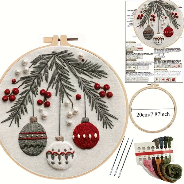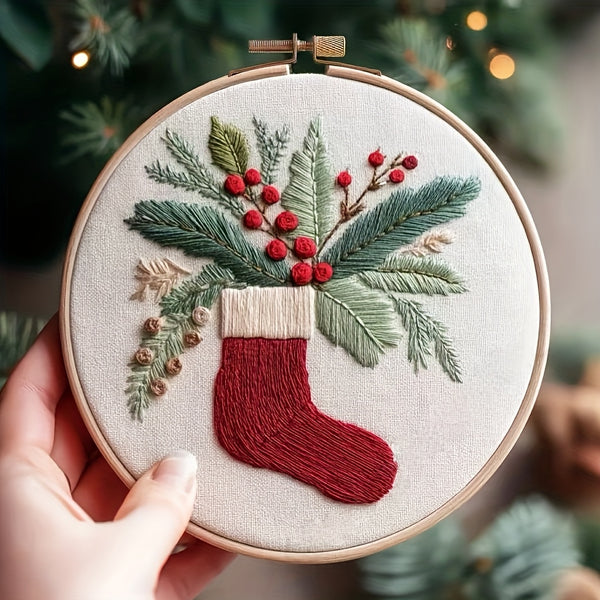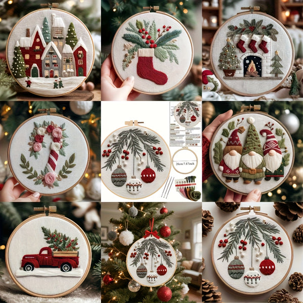 Christmas Embroidery Kit – Beginner DIY Stitch Set with Fabric, Hoop & Pattern | Holiday Ornament Craft Gift & Home Décor Set