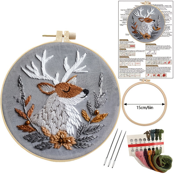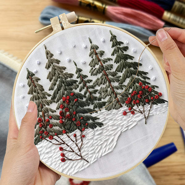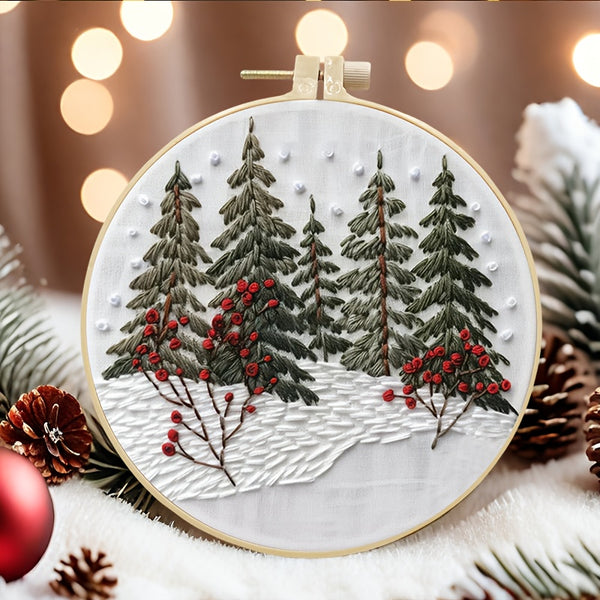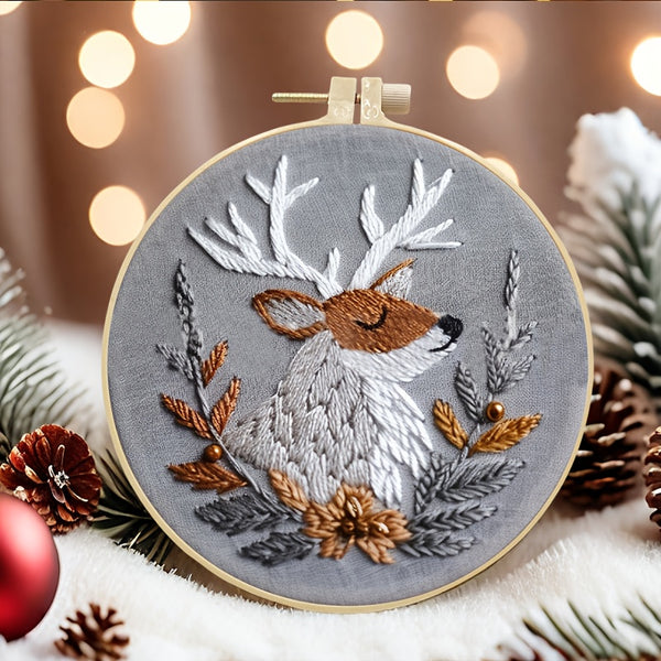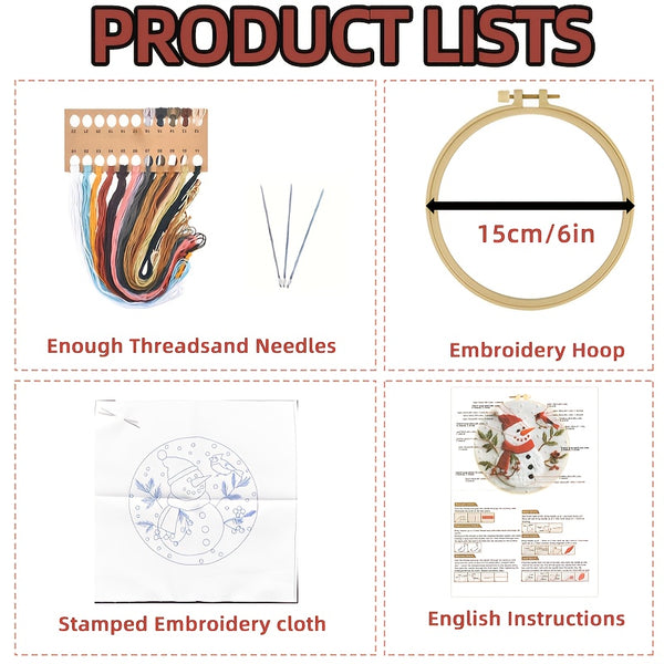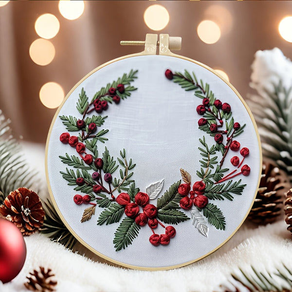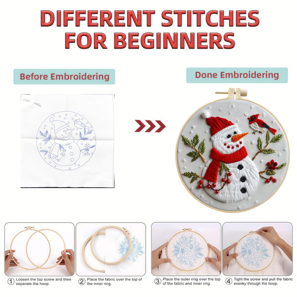 Christmas Embroidery Kit – Beginner DIY Stitch Set with Patterned Fabric, Needles & Threads | Holiday Gift & Home Wall Décor