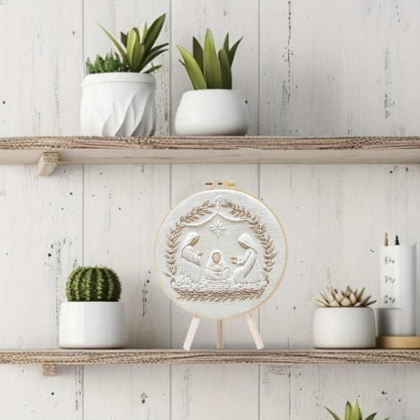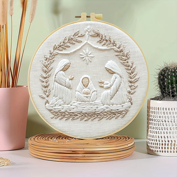 Christmas Embroidery Kit – Beginner DIY Stitch Set with Printed Fabric, Hoop, Needles & Threads | Small Easy Craft Gift Décor