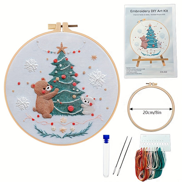 Christmas Embroidery Kit – Santa, Tree, Bear & Penguin Designs | Beginner DIY Holiday Stitch Set with Hoop, Thread & Instructions