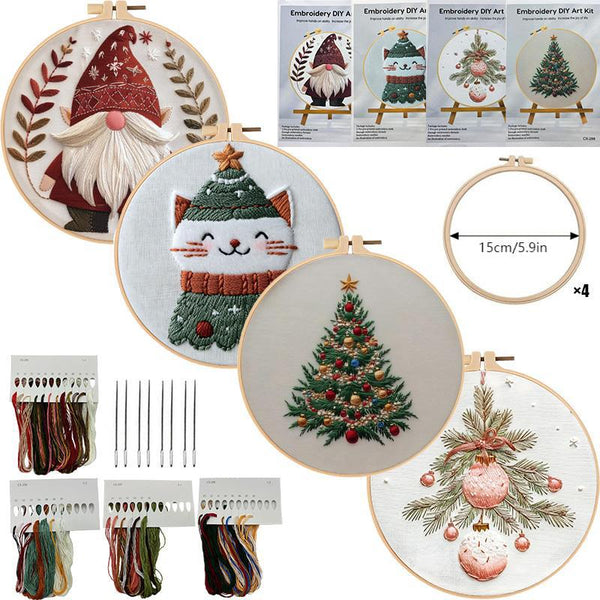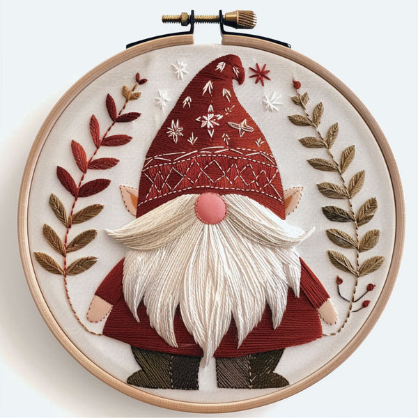 Christmas Gnome Embroidery Kit for Beginners – Complete DIY Set with 5.9" Hoop, Pre-Printed Fabric, Threads, Needles & Guide – Holiday Craft Gift