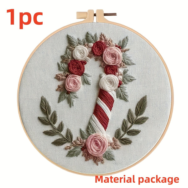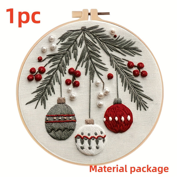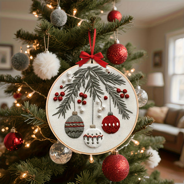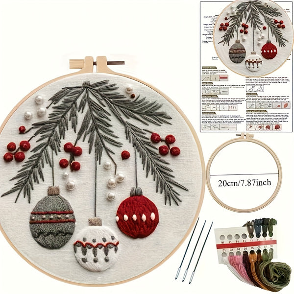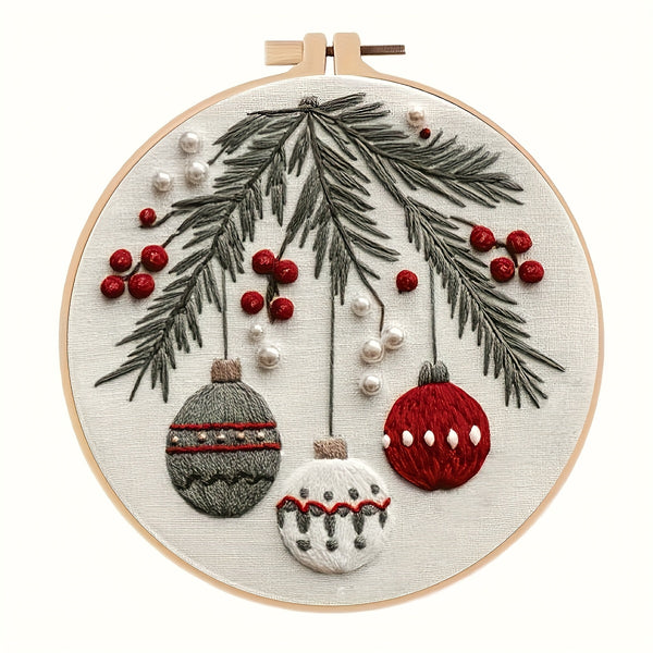 Christmas Ornaments Embroidery Kit for Beginners – DIY Holiday Baubles Design with Pre-Printed Fabric, Hoop, Threads & Needles – Festive Craft Gift