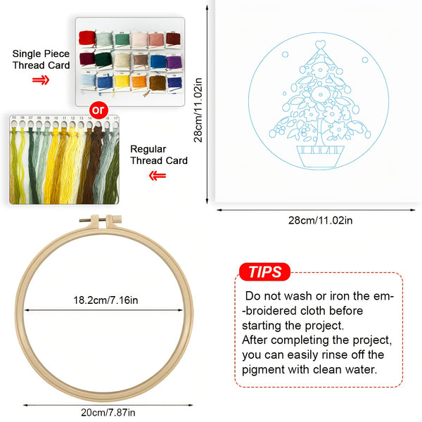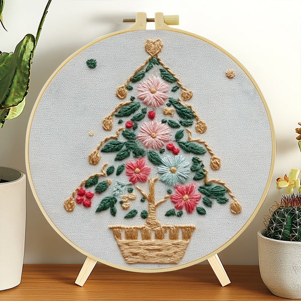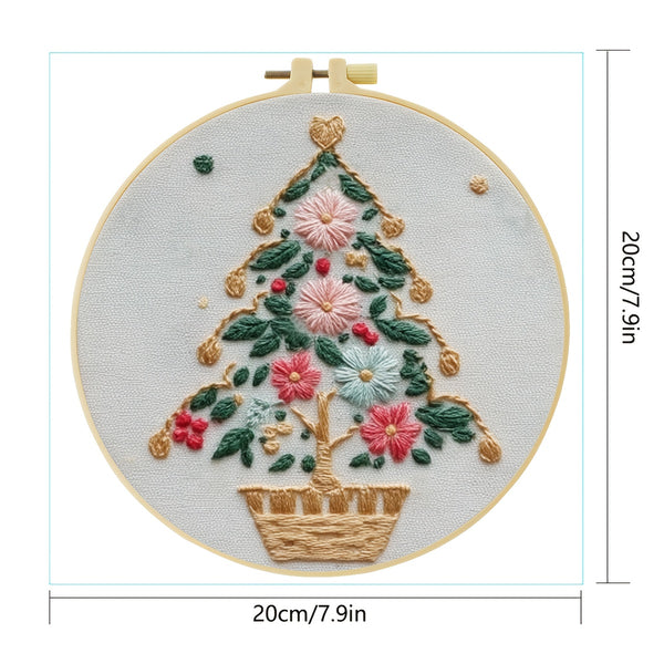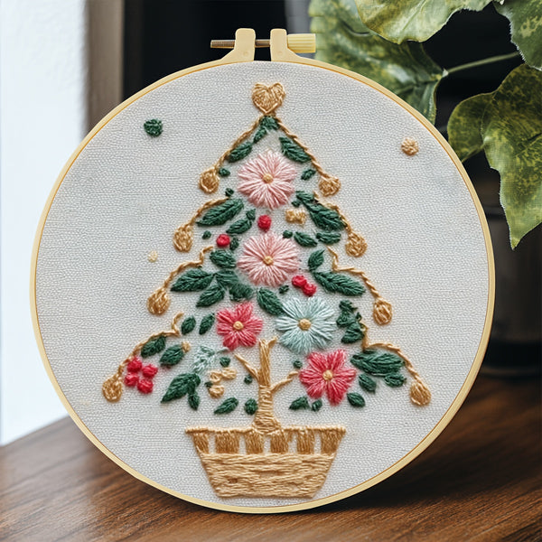 Christmas Tree Embroidery Kit – Beginner DIY Stitch Set with Fabric, Hoop & Threads | Holiday Gift & Home Décor Craft for Adults