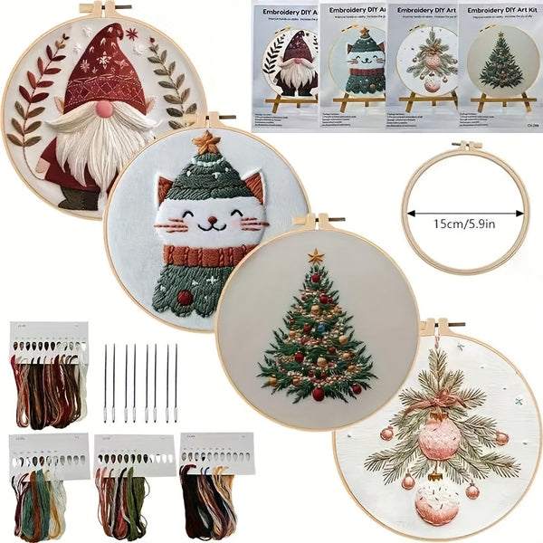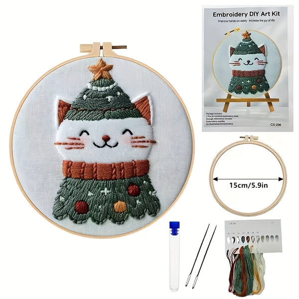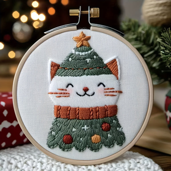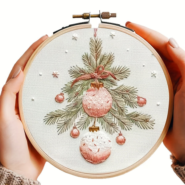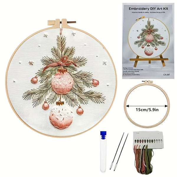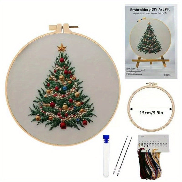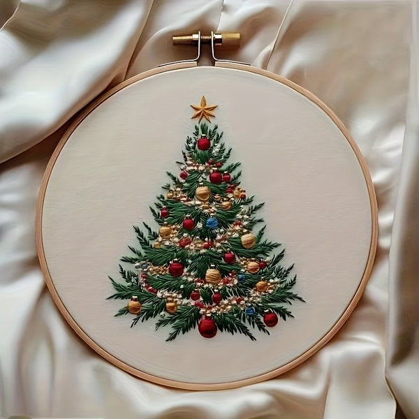 Christmas Tree Embroidery Kit for Beginners – Complete DIY Set with Pre-Printed Fabric, Hoop, Threads & Instructions – Holiday Gift & Home Decor