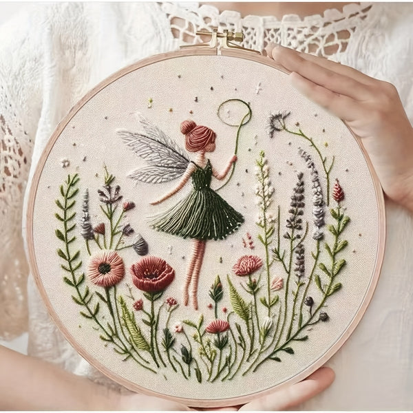 Girl with Wings Embroidery Kit for Beginners – Easy DIY Hand-Stitch Set, Ideal Home Decor & Festival Gift, Local Warehouse, No Import Fees