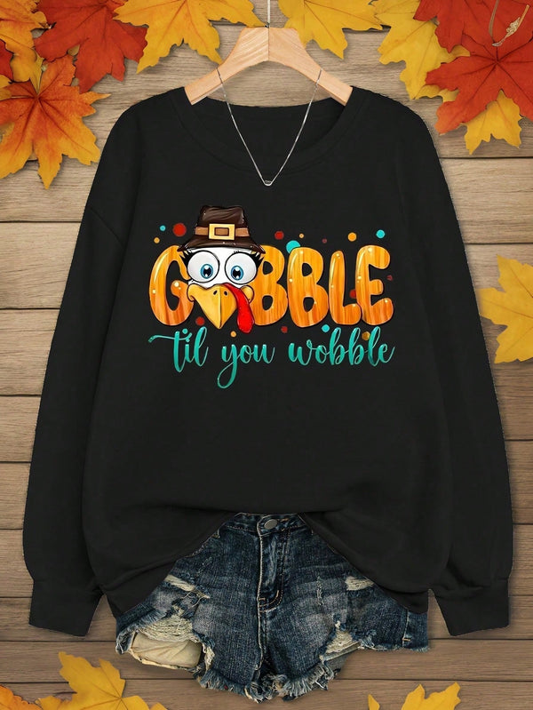 Gobble Til You Wobble Sweatshirt | Funny Thanksgiving Pullover for Women | Cozy Fall Crewneck | Holiday Graphic Top