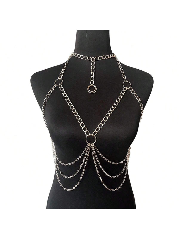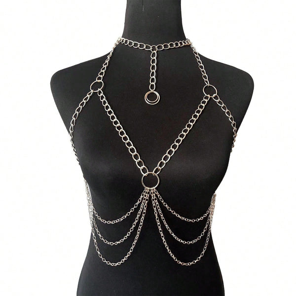 β€’ Choker-to-body chain silhouette with adjustable clasp