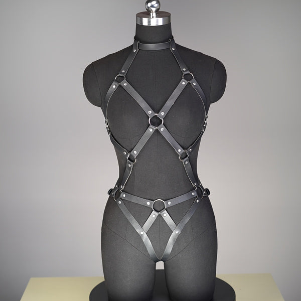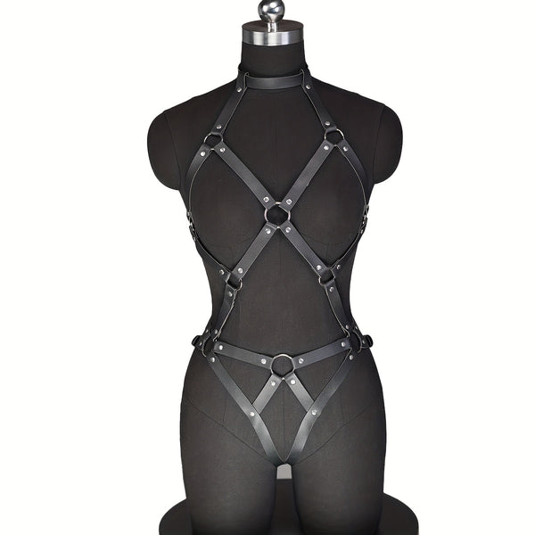 Gothic Faux Leather Full Body Harness – Adjustable Unisex Design