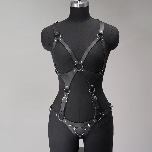 The cinched waist design enhances your silhouette while offering comfort and flexibility. Whether layered over a shirt, dress, or bodysuit, this harness instantly transforms any outfit into a powerful fashion statement.