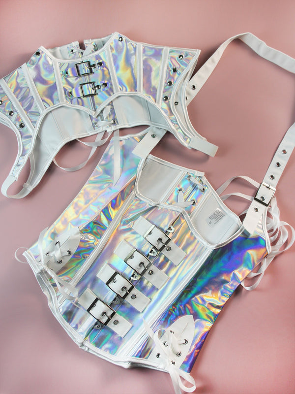 BadBLingerie Holographic Cyberpunk Corset Set – Dazzle in Futuristic Steampunk Style