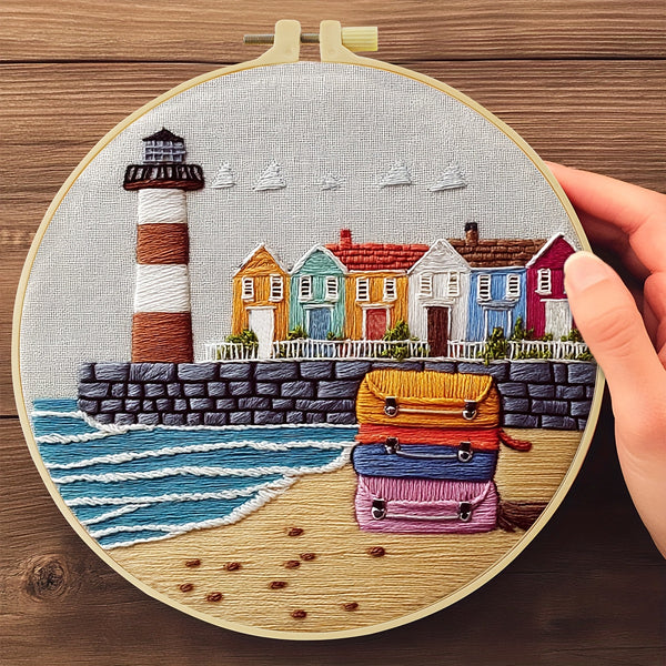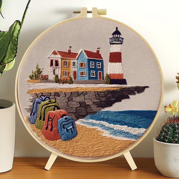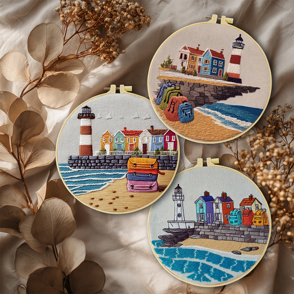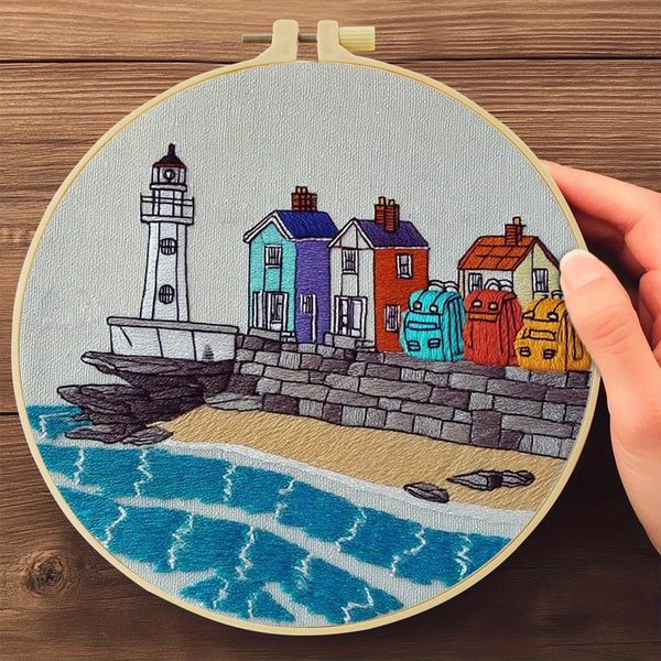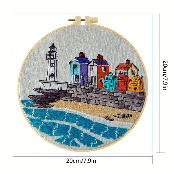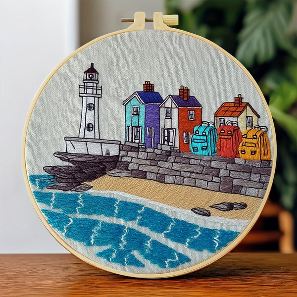 Lighthouse Bay Embroidery Kit – Beginner DIY Nautical Stitch Set with Fabric, Threads & Pattern | Coastal Gift & Home Décor Craft