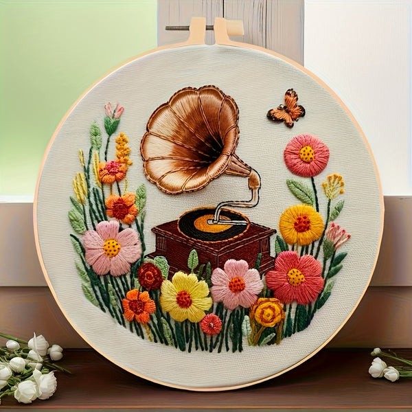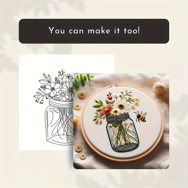 Mason Jar Flowers Embroidery Kit for Beginners – DIY Floral & Bee Design with Pre-Printed Fabric, Hoop, Threads & Needles – Craft Gift & Decor