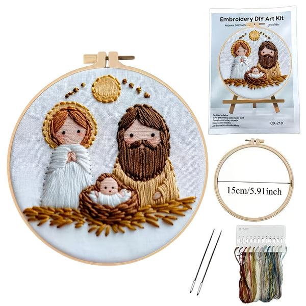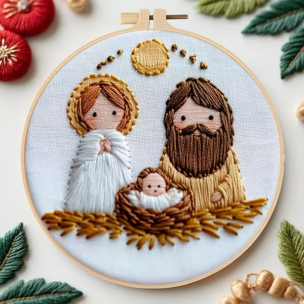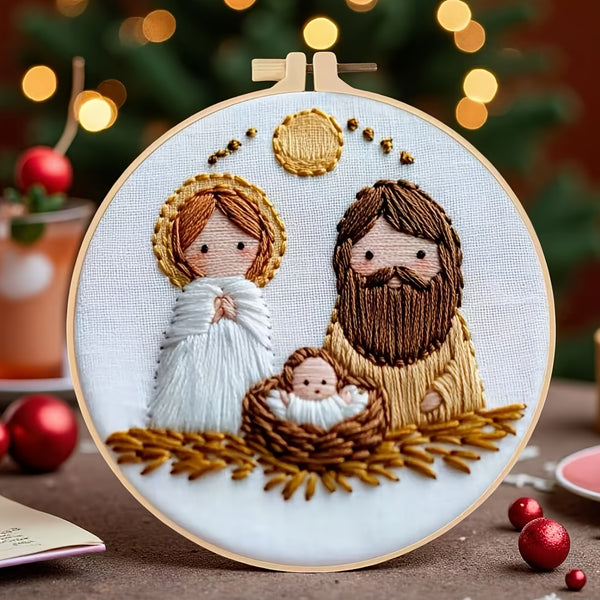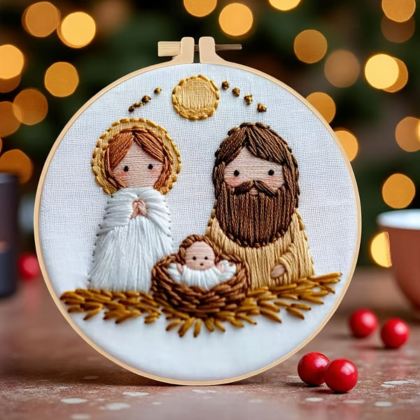Nativity Embroidery Kit – Beginner DIY Handmade Stitch Set with Patterns, Threads & Hoop | Christmas Gift & Home Décor Craft
