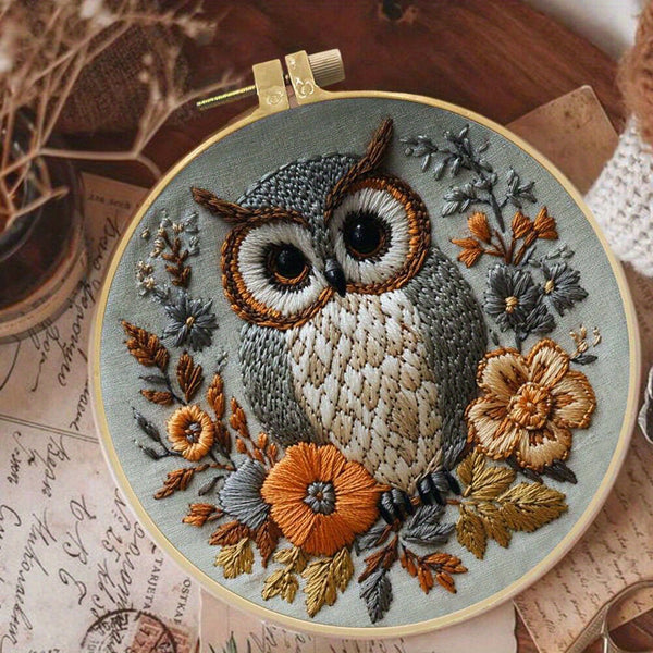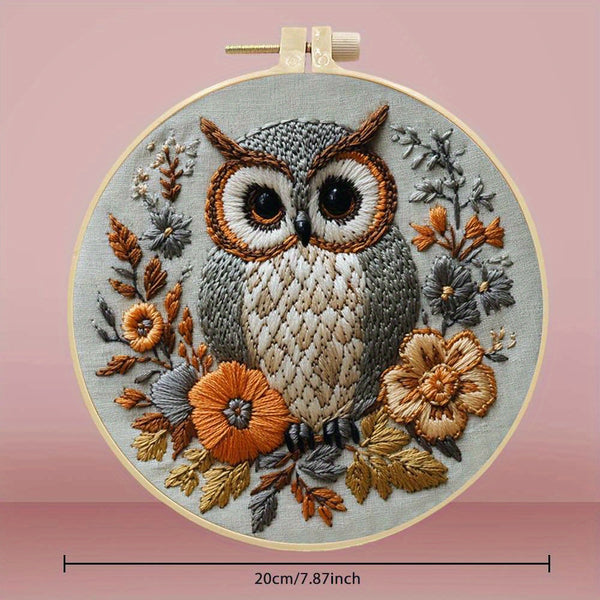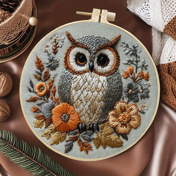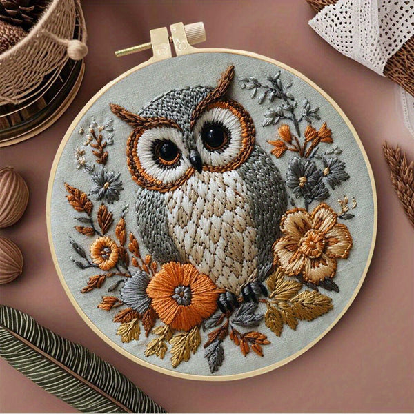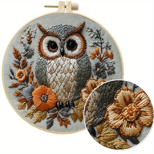 Owl Embroidery Kit for Beginners – DIY Forest Bird Design with Pre-Printed Fabric, Hoop, Threads & Needles – Cozy Craft Gift & Home Decor