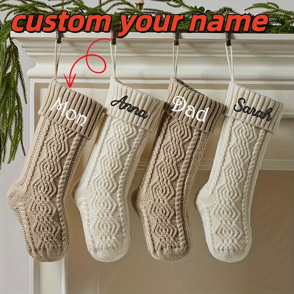 Personalized Knitted Christmas Stockings 2025 – Custom Family Name Holiday Socks | Handmade Fireplace Décor Gift for Christmas