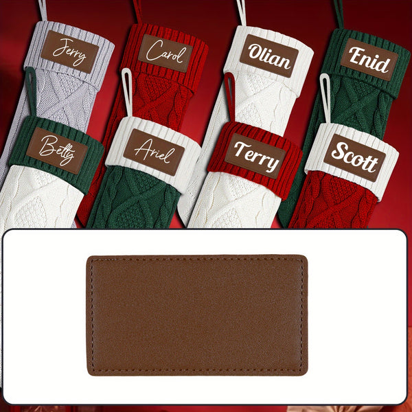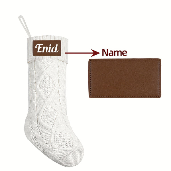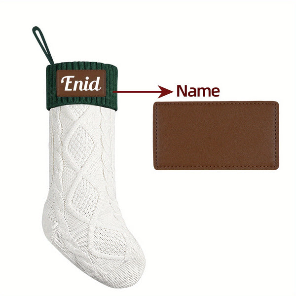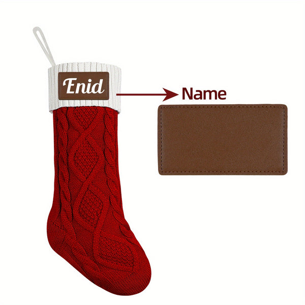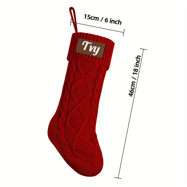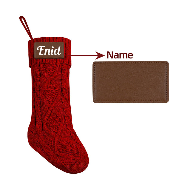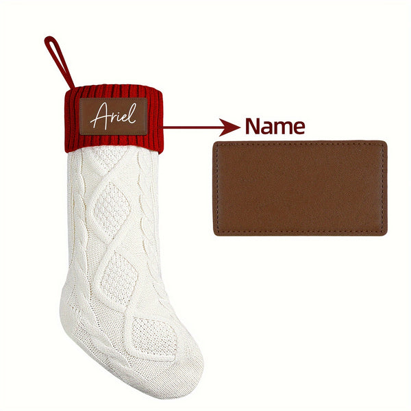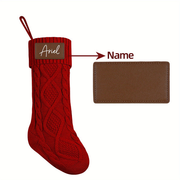 Each stocking is made from soft, thick yarn with a cozy cable-knit pattern and topped with a rich red cuff, featuring your personalized name or message in elegant script. These stockings add warmth and sophistication to any mantel, making Christmas morning extra special.