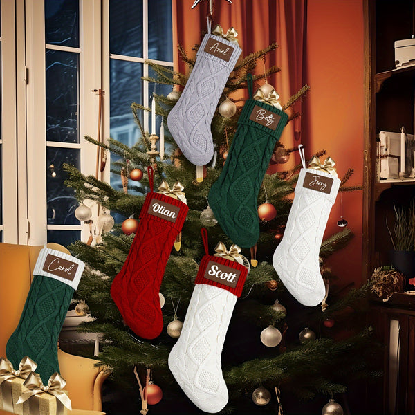 Personalized Knitted Christmas Stockings 2025 – Custom Family Name Holiday Socks | Handmade Fireplace Décor Gift for Christmas