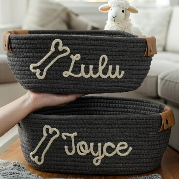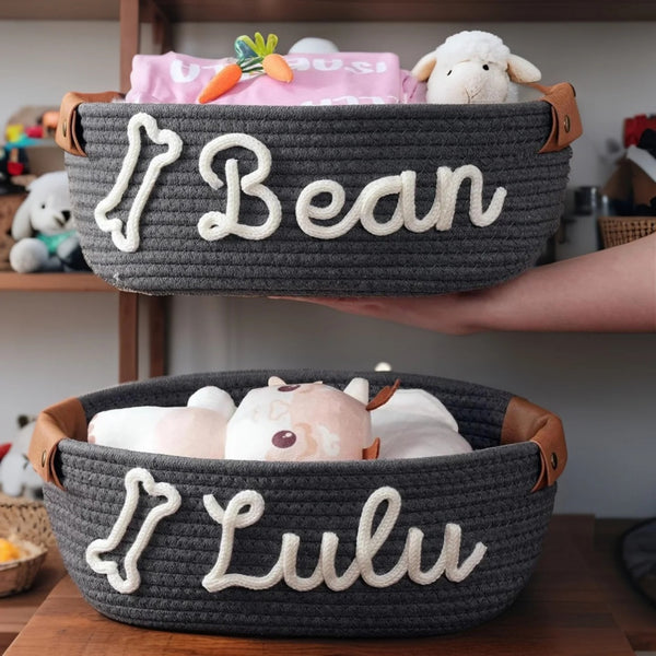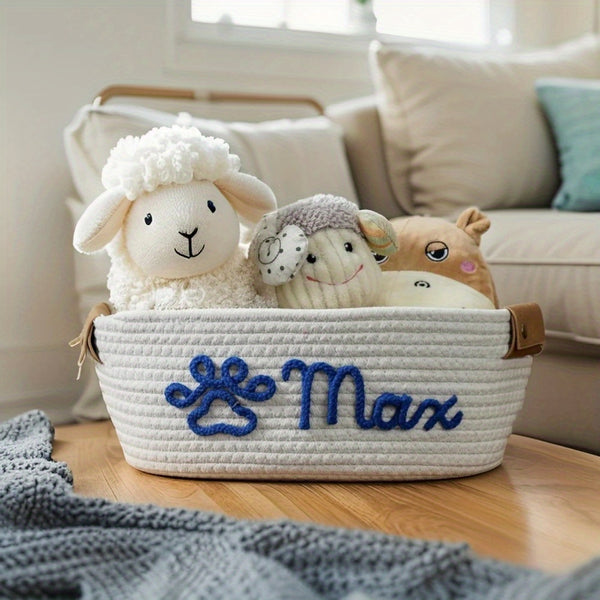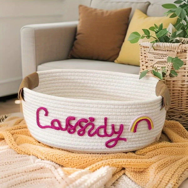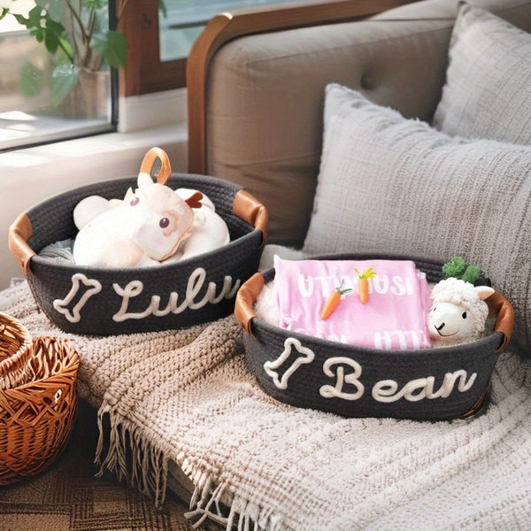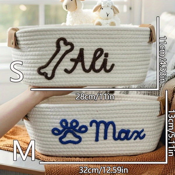 Personalized Name Basket – Custom Rope Storage Bin for Pets, Bedroom, or Office | Handmade Organizer for Toys, Clothes & Home Décor