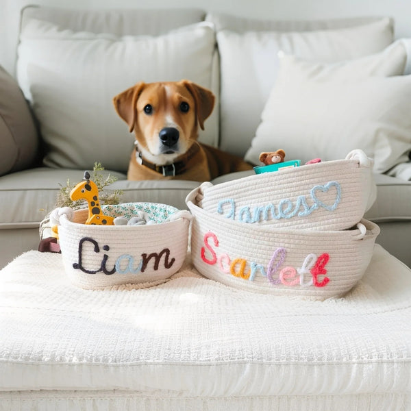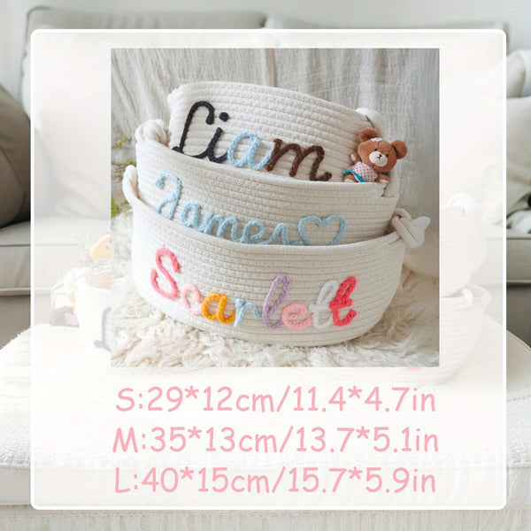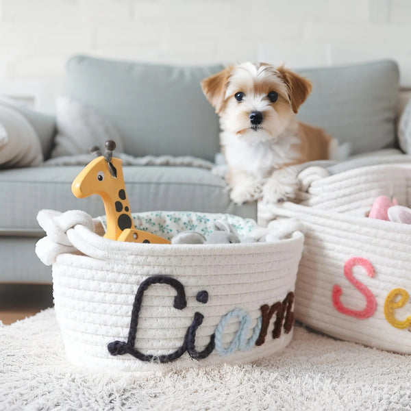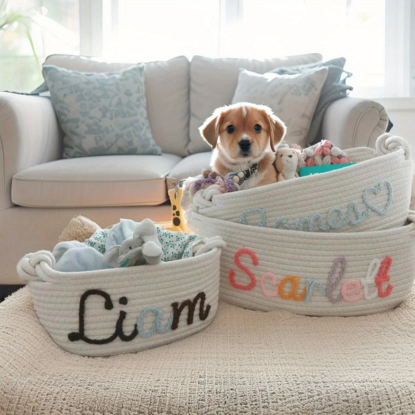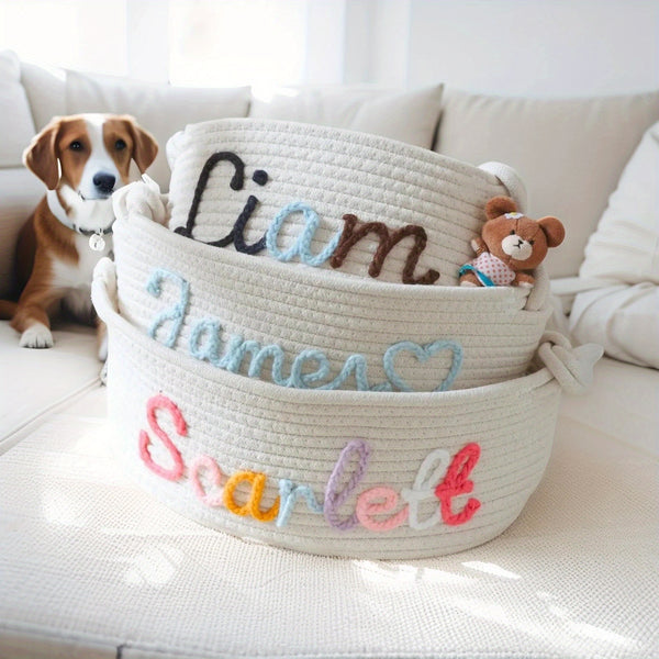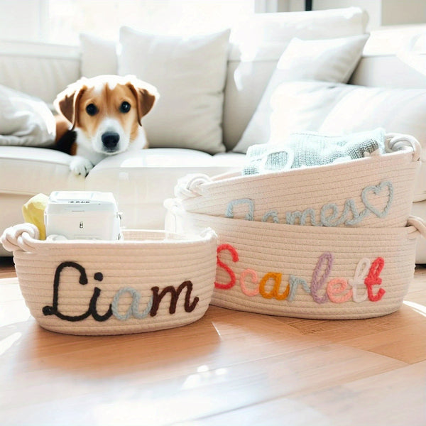 Personalized Name Basket – Custom Rope Storage Bin for Pets, Bedroom, or Office | Handmade Organizer for Toys, Clothes & Home Décor