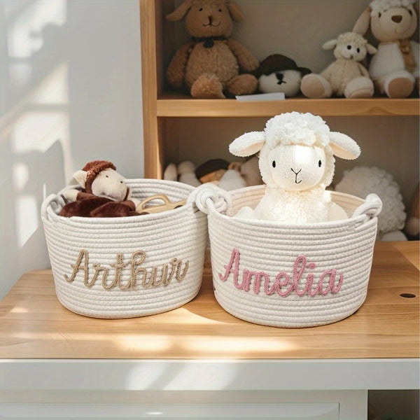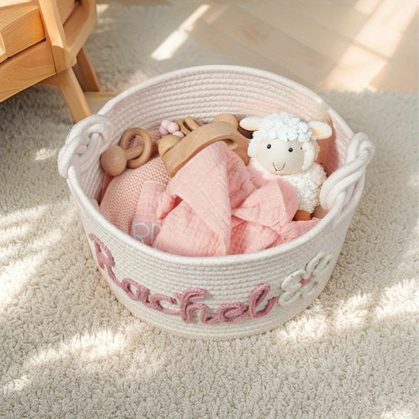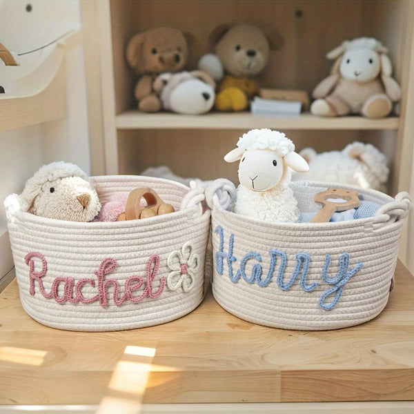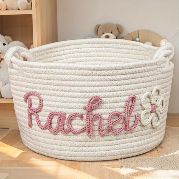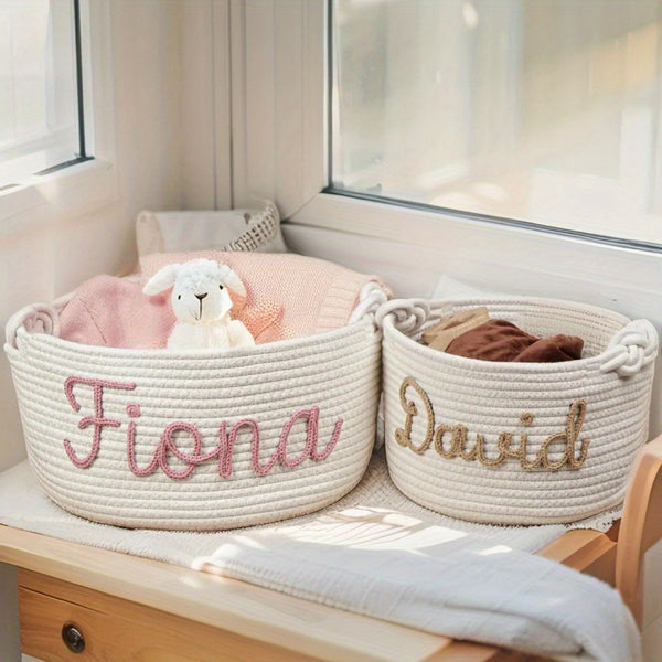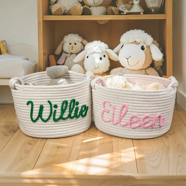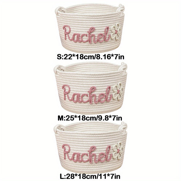 Personalized Name Basket – Custom Rope Storage Bin for Pets, Bedroom, or Office | Handmade Organizer for Toys, Clothes & Home Décor