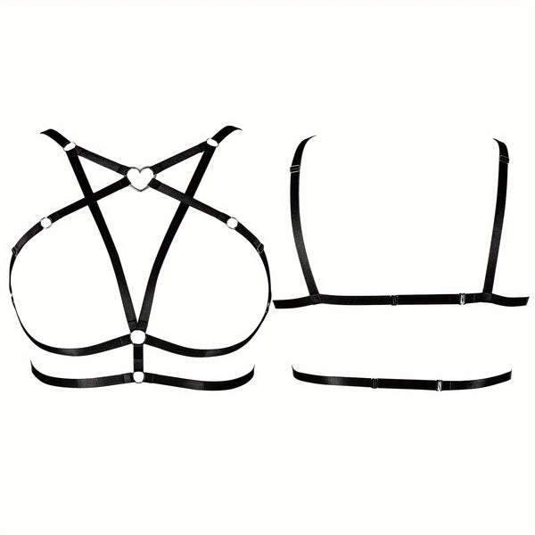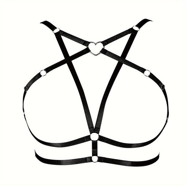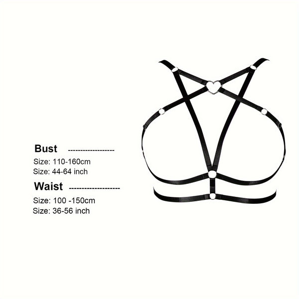 Plus Size Gothic Body Harness – Adjustable Punk Cage Bra Belt | Elastic Hollow Chest Harness Top | Festival, Halloween, Party Wear for Women