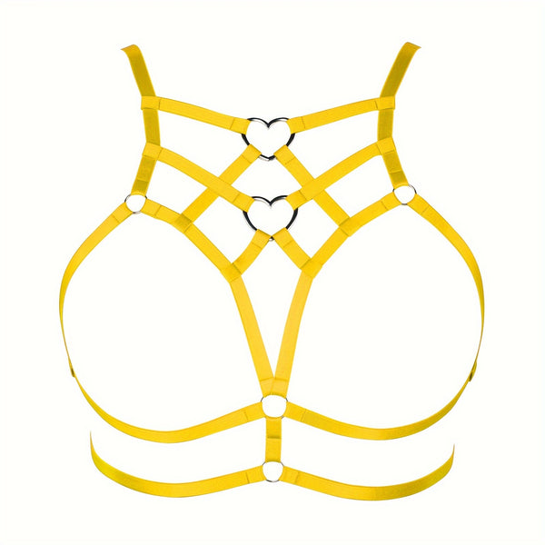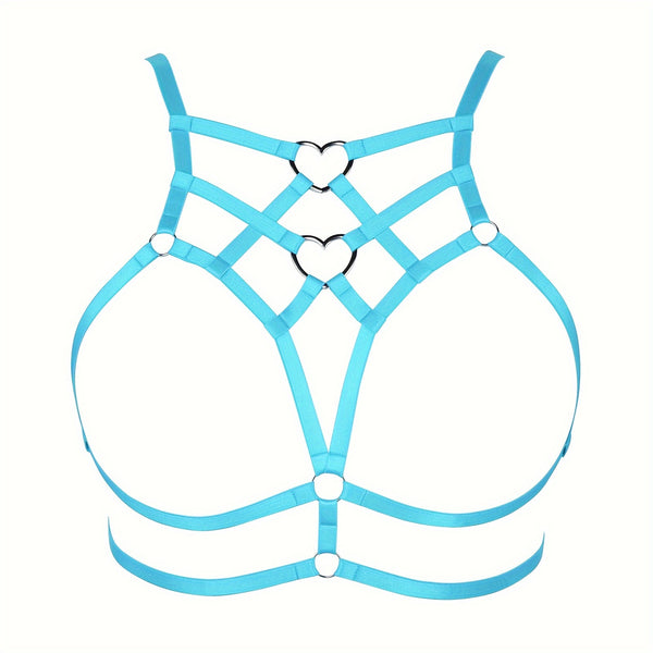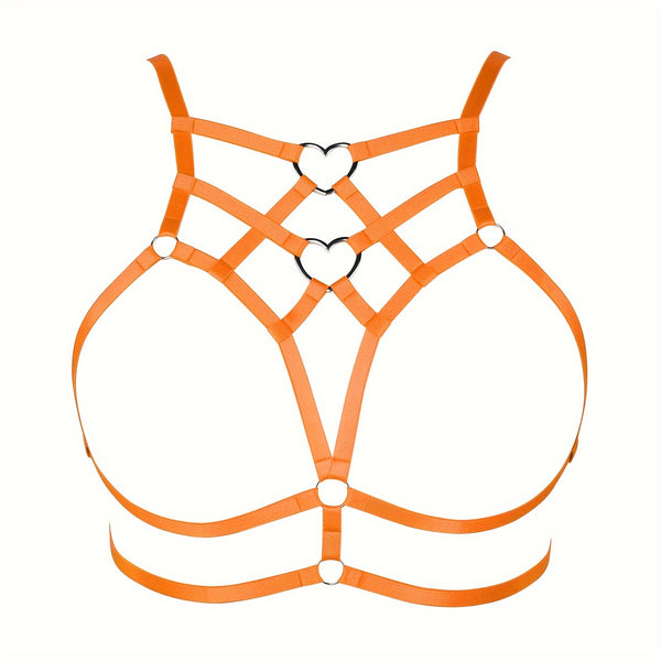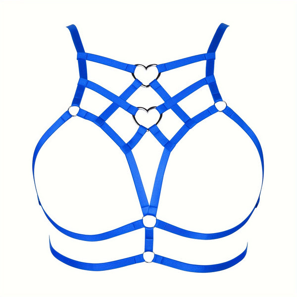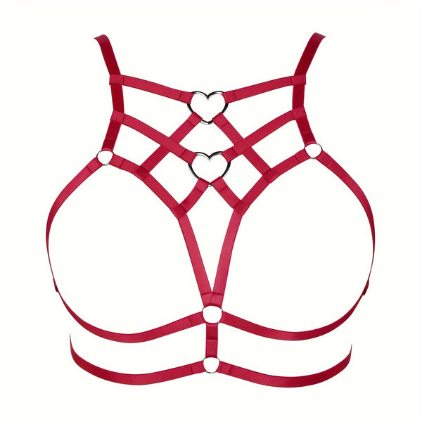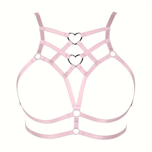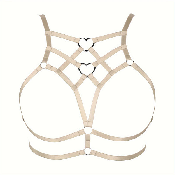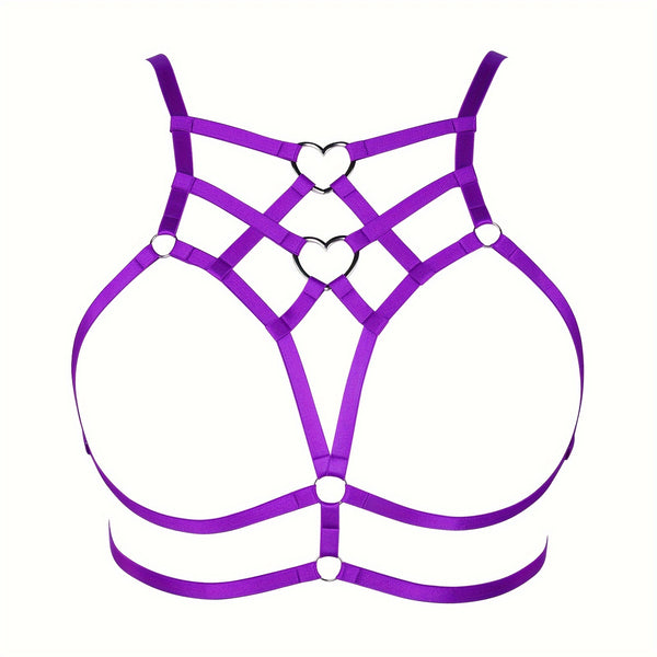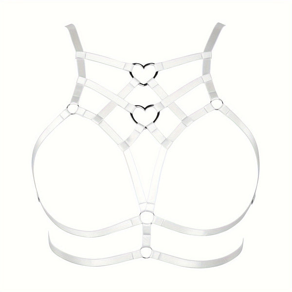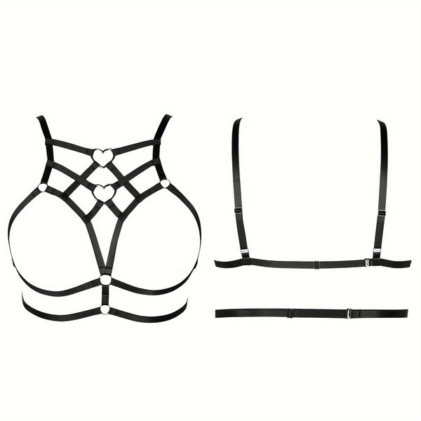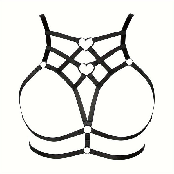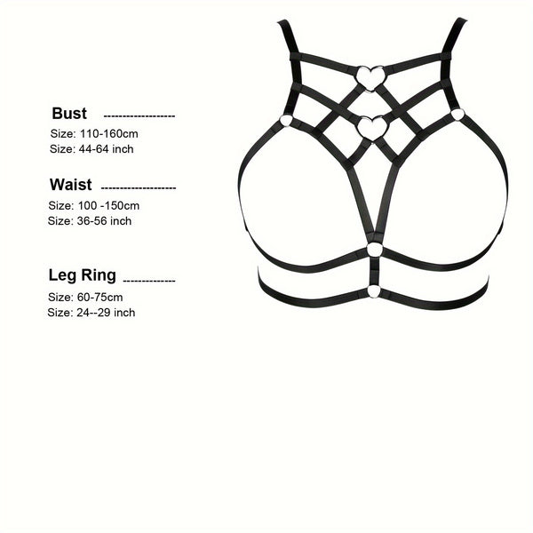 Plus Size Gothic Body Harness Bra – Adjustable Punk Cage Top | Hollow Heart Design Elastic Harness | Festival, Halloween, Costume, Party Wear