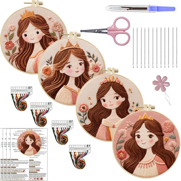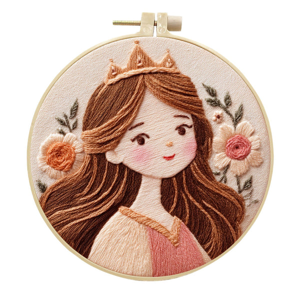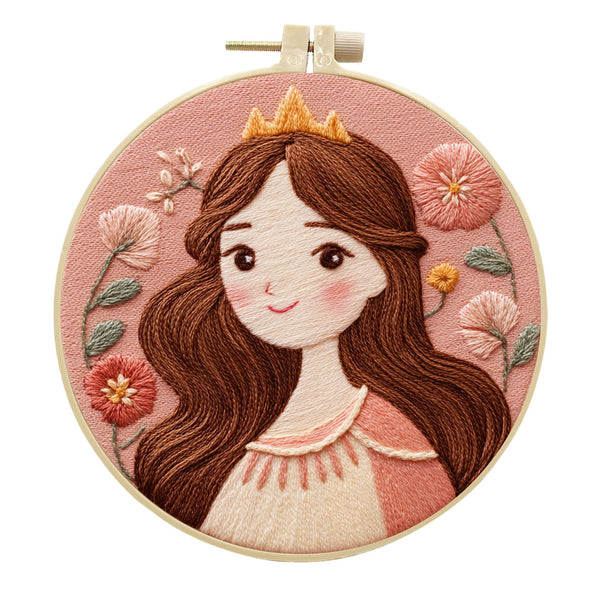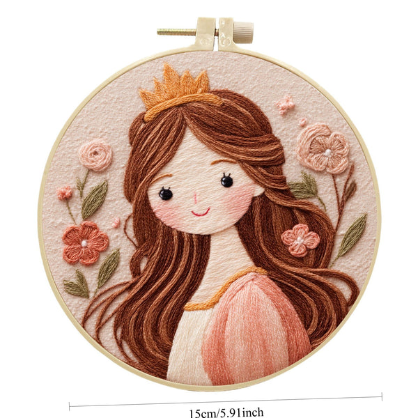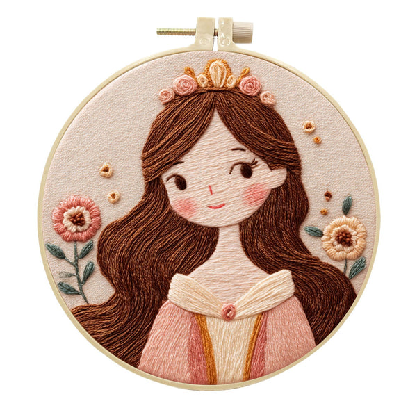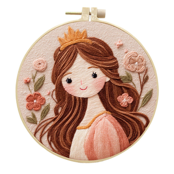 Princess Embroidery Kit for Beginners – DIY Set with Pre-Printed Fabric, Hoop, Threads & Needles – Cute Floral Needlework Craft Gift